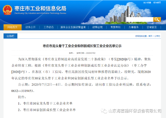為深入貫徹落實《棗莊市支持制造業(yè)高質(zhì)量發(fā)展二十條政策》(棗發(fā)[2020]6號)精神,聚焦企業(yè)培育工程,根據(jù)《棗莊市龍頭骨干工業(yè)企業(yè)和創(chuàng)新成長型工業(yè)企業(yè)認定辦法》(棗工辦字[2020]3號),在各區(qū)(市)工信局、棗莊高新區(qū)經(jīng)發(fā)局初審和推薦的基礎(chǔ)上,經(jīng)研究,現(xiàn)將2020年認定的棗莊市30家龍頭骨干工業(yè)企業(yè)和30家創(chuàng)新成長型工業(yè)企業(yè)名單予以公示。