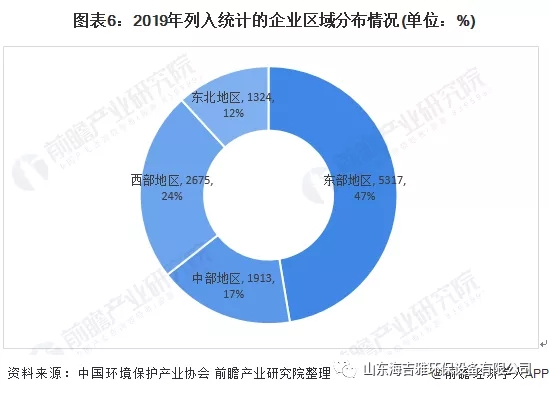 據(jù)環(huán)境保護(hù)產(chǎn)業(yè)協(xié)會統(tǒng)計(jì)數(shù)據(jù),從領(lǐng)域分布看,11229家企業(yè)集中分布在環(huán)境監(jiān)測、水污染防治、固廢處置與資源化利用、大氣污染防治領(lǐng)域,上述4個(gè)領(lǐng)域的企業(yè)數(shù)量之和占比達(dá)91.6%;其中,水、固2個(gè)領(lǐng)域企業(yè)的營業(yè)收入、營業(yè)利潤占比分別高達(dá)76.5%和82.7%。從地域分布看,11229家企業(yè)有近半數(shù)集聚于東部地區(qū),中、西部和東北三個(gè)地區(qū)的企業(yè)總數(shù)占52.6%,僅比東部地區(qū)企業(yè)占比高5.2個(gè)百分點(diǎn)。東部地區(qū)環(huán)保企業(yè)的營業(yè)收入、營業(yè)利潤占比分別為67.4%、67.6%,遠(yuǎn)遠(yuǎn)超過中、面部和東北三個(gè)地區(qū)企業(yè)的營業(yè)收入、營業(yè)利潤。長江經(jīng)濟(jì)帶11省(市)以45.6%的企業(yè)數(shù)量占比貢獻(xiàn)了近一半的產(chǎn)業(yè)營業(yè)收入。