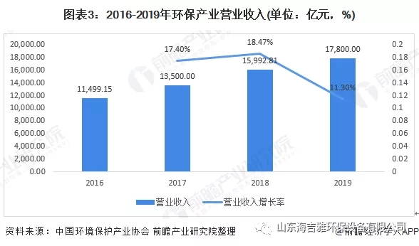 隨著污染防治攻堅(jiān)戰(zhàn)的實(shí)施,我國環(huán)保產(chǎn)業(yè)市場需求進(jìn)一步釋放,環(huán)保產(chǎn)業(yè)發(fā)展的營商環(huán)境持續(xù)改善,環(huán)保產(chǎn)業(yè)規(guī)模繼續(xù)保持較快增長,全行業(yè)工藝和技術(shù)裝備水平穩(wěn)步提升、創(chuàng)新模式深入推進(jìn),產(chǎn)業(yè)結(jié)構(gòu)不斷完善,行業(yè)格局逐步優(yōu)化。盡管受到2018年產(chǎn)業(yè)發(fā)展流動性危機(jī)余波及中美貿(mào)易摩擦的影響,2019年一些環(huán)保企業(yè)依然面臨著經(jīng)營危機(jī),但總體來看,2019年環(huán)保產(chǎn)業(yè)整體發(fā)展態(tài)勢趨好,持續(xù)保持了較快發(fā)展。據(jù)中國環(huán)境保護(hù)產(chǎn)業(yè)協(xié)會測算數(shù)據(jù),2019年全國環(huán)保產(chǎn)業(yè)營業(yè)收入約17800億元,較2018年增長約11.3%。
