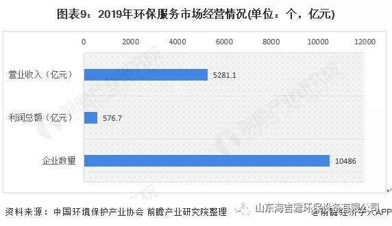 據(jù)環(huán)境保護(hù)產(chǎn)業(yè)協(xié)會數(shù)據(jù),2019年我國列入統(tǒng)計(jì)的環(huán)境服務(wù)企業(yè)共10486個(gè),年收入總額為5281.1億元,年利潤總額為576.7億元。