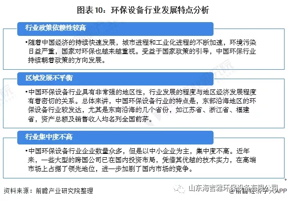 環(huán)保設(shè)備行業(yè)的發(fā)展共有三大特點(diǎn),分別是政策依賴性較高、區(qū)域發(fā)展不平衡及市場分散,競爭激烈。具體分析如下: