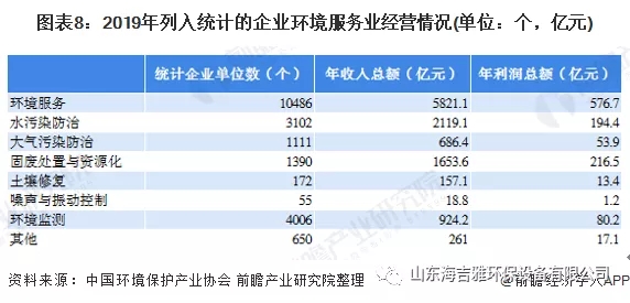 環(huán)保產(chǎn)業(yè)細(xì)分市場情況