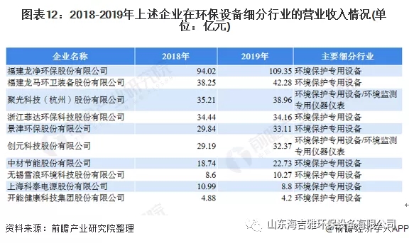 按行業(yè)分,營業(yè)收入排名前十的企業(yè)中,只有聚光科技和創(chuàng)元科技有設(shè)計(jì)到環(huán)境監(jiān)測專用儀器儀表行業(yè),但沒有企業(yè)涉及到環(huán)境污染處理專用藥劑材料行業(yè)的業(yè)務(wù)。