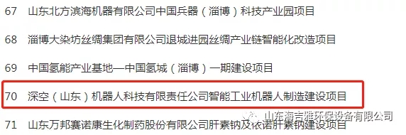 海吉雅環(huán)保與上海迪貝機(jī)器人科技有限公司共同投資深空(山東)機(jī)器人科技有限責(zé)任公司的智能工業(yè)機(jī)器人制造項(xiàng)目,同時列入省重大項(xiàng)目名單。