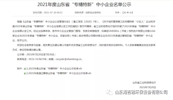 近日,我公司被山東省工業(yè)和信息化廳評為2021年度省“專精特新”中小企業(yè)。