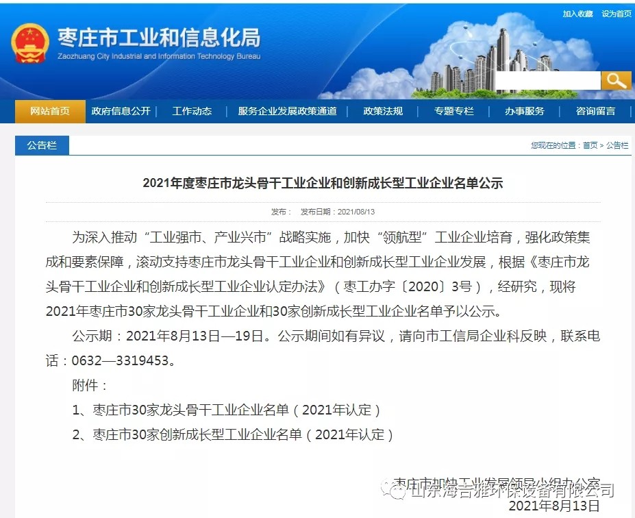 2021年8月13日,我公司被棗莊市工業(yè)和信息化局評為“2021年度棗莊市創(chuàng)新成長型工業(yè)企業(yè)”。