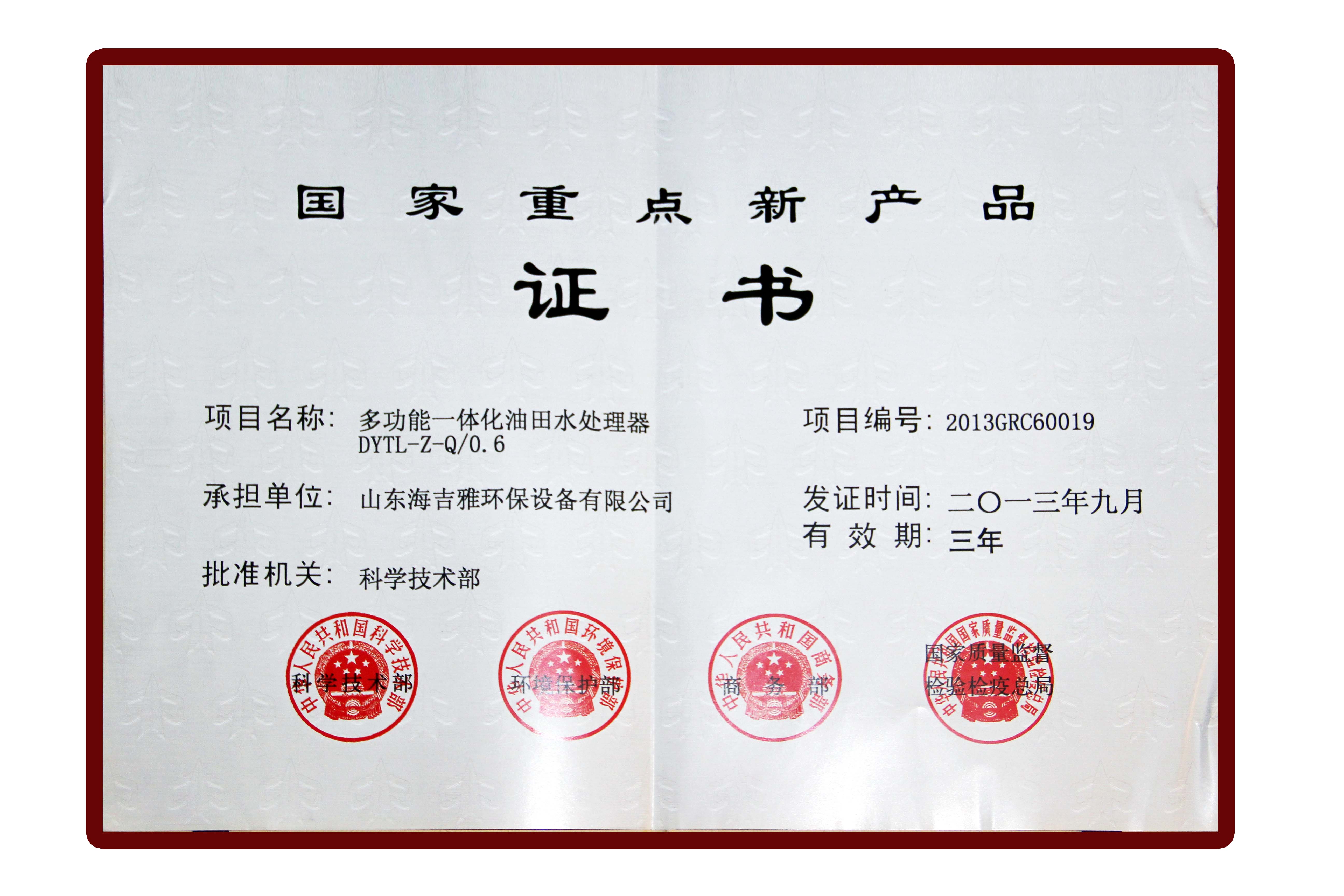 國家重點新產(chǎn)品證書
