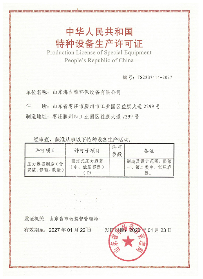 特種設(shè)備生產(chǎn)許可證